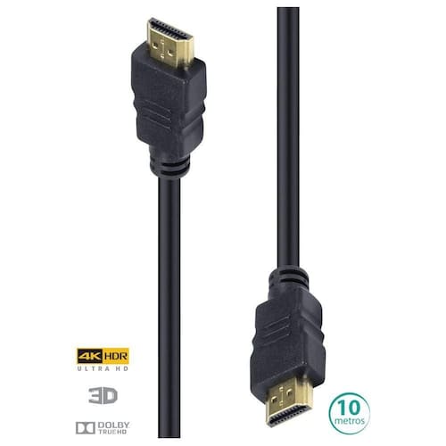 Cabo Hdmi 4k Ultra Hd 3d Conexao Ethernet 10 Metros - H20-10 ** Assistir ao seu programa ou jogar seu jogo favorito com a máxima qualidade de som e imagem é tudo que o expectador deseja! A Vinik tem a linha completa de cabos HDMI , que transmite até você tudo que há de mais real em áudio e vídeo. ** Na versão , você pode mergulhar na qualidade 4K, a máxima resolução com todos os detalhes perfeitos, suporte 3D, além da qualidade do áudio: são nada menos que 32 canais suportados! ** Nesta versão, está disponível também a tecnologia HDR (High Dynamic Range), que nada mais é do que o perfeito balanceamento entre brilho e contraste, ou seja, transmite imagens mais vivas e reais. ** Função Ethernet: tem vários dispositivos que utilizam internet? Se sim, bastar ter um único cabo de rede conectado a um dos dispositivos, o HDMI trata de levar para você a comunicação em rede com os demais. Dados técnicos: Resolução: 4k (3840 x 2160 px) Velocidade de transmissão: 18 Gbps Suporta 3D: Sim Possui um de dados Ethernet 100 Mbps Sincronismo labial (Auto lip-sync): Sim Suporta aspecto 21:9: Sim Canais de áudio: 32 canais Frequência do sinal de áudio: 1536 MHz Áudio Dolby True HD: Sim Áudio DTS HD Master: Sim de áudio reverso (Audio return channel): Sim Codificação de vídeo YCbCr 4:2:0: Sim Transmite dois canais de vídeo a 2 destinos: Sim Transmite 4 canais de áudio a destinos distintos: Sim AWG: 28 Revestimento: PVC Conector: Dourado Filtro: Não Comprimento: 10 metros Ean: 7908020903826