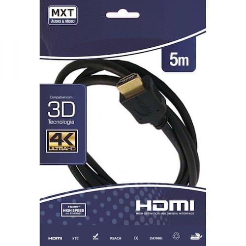 Cabo de alta qualidade com 5 metros, Atende todas as definições de mercado até 4K Cabo HDMI versão 2.0 com conectores banhados à ouro 24k, protegido com blindagem, garantindo maior durabilidade, evitando interferências e perda de qualidade.