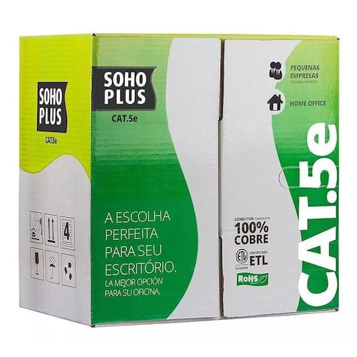 Marcasoho plus furukawaModelocmxTipo de cabo de redepar trançado utpUnidade de vendabobinaCategoria do cabo de redecategoria 5eComprimento305 mConector de entradarj45Conector de saídarj45Ambienteinterior Cabo rede lan furukawa sohoplus azul cat5e 24awg cmx 305m Características: Marca: furukawa; Modelo: 23200099; Especificações: Tipo: cabo lan; Ambiente de instalação: interno; Ambiente de operação: não agressivo. Construção: Rohs compliant; Categoria 5e; U/utp não blindado ; Pvc cmx. Aplicações: Pode ser utilizado com os seguintes padrões atuais de redes citados abaixo: A. Atm 155 utp , afphyoo15.000 y afphy0018.000, 155/51/25 mbps; B. Tppmd , ansi x3t9.5, 100 mbps; C. Gigabit ethernet, ieee 802.3z, 1000 mbps; D. 100basetx, ieee 802.3u, 100 mbps; E. 100baset4, ieee 802.3u ,100 mbps; F. 100vganylan, ieee802.12, 100 mbps; G. 10baset , ieee802.3, 10 mbps; H. Token ring, ieee802.5 , 4/16 mbps; I. 3xas400, ibm, 10 mbps; 2. Soluções relacionadas: industrias, elevadores, armazéns. Normas aplicáveis: Tia568c.2 e seus complementos, ansi/tia569, iso/iec dis 11801, ul 444. Certificações: Anatel: 0036080256. Construtivas: Condutor: cobre nú com diâmetro nominal de 24awg; Isolamento: poliolefina com diâmetro nominal 0.9mm; Resistência de isolamento: 10000 mo.Km; Quantidade de pares: 4 pares 24 awg; Par: os condutores isolados são reunidos dois a dois, formando o par. Os passos de torcimento devem ser adequados, de modo a atender os níveis de diafonia previstos e minimizar o deslocamento relativo entre si; Núcleo: os quatro pares são reunidos com passo adequado, formando o núcleo do cabo; Blindagem: não blindado u/utp ; Capa: constituído por pvc retardante a chama; Diâmetro nominal: 4,8 mm, Físico: Classe de flamabilidade: cmx: iec 603321 conforme abnt nbr 14705; Temperatura de instalação 0ºc a 50ºc; Temperatura de armazenamento 20ºc a 70ºc; Temperatura de operação 20ºc a 60ºc. Elétrico: Desequilíbrio resistivo máximo 5%; Resistência elétrica cc máxima do condutor de 20ºc: 93,8 o/km; Capacitância mutua 1khz máximo: 56 pf/m; Desequilíbrio capacitivo par x terra 1khz máximo: 3,3 pf/m; Impedância característica: 100±15% o; Atraso de propagação máximo: 545ns/100m 10mhz; Diferença entre o atraso de propagação máximo: 45ns/100m; Prova de tensão elétrica entre condutores: 2500 vdc/3s; Velocidade de propagação nominal: 68%; Na embalagem contém: 01 cabo rede lan furukawa sohoplus azul cat5e 24awg cmx 305m.
