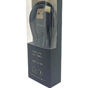 - Marca: Elgin; - Elgin: 46RCAPPLEPDS; - Cor: Preto; - Cabo Lightning; - Com conector lightning à porta USB de seu computador para sincronizar dados e adaptador de energia para carregar a bateria utilizando uma tomada de parede; - Para recarga e transferência de dados; - USB 2.0 AM; - ALTA VELOCIDADE: - Para transmissão de dados e recarga elétrica; - Ideal para utilização em celular e tablet com conexão lightning; - Extensão de 1 metro para facilitar o seu dia a dia; - Garantia: 3 meses.