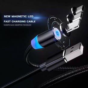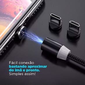 É um cabo de carregamento comum, porém o que se diferencia dos demais é sua praticidade e tecnologia.Com 3 plugs(micro usb, usb tipe c e lightning) conecta de forma magnética para carregar seu aparelho.Cabo com revestimento em nylon garante maior resistência, deixando a concorrência uns 10 anos pra trás em termos de inovação e qualidade.Conexão prática, extremamente rápida, e conveniente até mesmo no escuro.Com o cabo magnético você não precisa ficar espetando o cabo na entrada dos seus aparelhos evitando assim qualquer tipo de dano e entrada de sujeira na porta do seu aparelho.CompatibilidadeCompatível com todos os smartphones do mercadoCaracterísticas técnicas:Voltagem máxima: 5vAmperagem máxima: 3.1aImã: neodímio de alta qualidadeRevestimento: nylonCor: prataComprimento: 1 metroTransferência de dados: nãoObs: o cabo é só para carregamento, não é compatível com carregamento turbo e não funciona para transferência de dados.