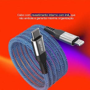 A Conexão Mágica para Carregar e Sincronizar seu iPhone: O Cabo Magnético da Geonav revoluciona a forma de carregar seu iPhone. Deixe o conector Lightning plugado no aparelho e conecte o cabo com a força do ímã, de forma rápida, fácil e segura. Conexão Magnética Prática: Evita o desgaste da porta do seu iPhone e permite conectar o cabo com apenas uma mão. Ideal para usar no carro. Carregamento Rápido (Power Delivery): Sendo USB-C para Lightning, é compatível com o carregamento rápido de 20W para iPhones mais recentes. Nylon Trançado e Resistente: O revestimento em nylon trançado garante uma durabilidade superior. Comprimento de 1,5 metros. Palavras-chave: Cabo Magnético, USB-C para Lightning, Geonav, Carregamento Rápido, iPhone, Power Delivery, Nylon.