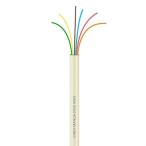 Especificações Técnicas - Quantidade de Vias: 6 - Bitola do Cabo: 26AWG - Capa externa: 4,80 mm - Vias externas cores: Marron, Vermelho, Laranja, Amarelo, Verde e Azul - Condutores: Extra Flexível com fios de cobre nu - Capa Externa:Termoplástico - Temperatura máxima de operação: 70 graus - Cores disponíveis: Bege ou Preto