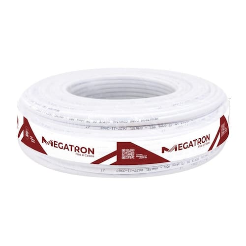 Características Principais do Produto: Tipo: Cabo Coaxial Marca: Megatron Comprimento: 300 Metros Cor: Branco Impedância: 75 Ohms Condutor: Aço Cobreado Isolação: Polietileno Expandido Revestimento Externo: PVC EAN: 7899278914514