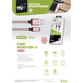 Design moderno e acabamento de alto padrão. O cabo Micro USB INX510RG, possui a estrutura do cabo em inox polido e conectores em alumínio anodizado, ambos na cor Prata, conferindo ao conjunto beleza e durabilidade. A estrutura metalizada do cabo também auxilia a evitar que o mesmo fique emaranhado facilmente. Além disso, com o cabo INX510RGas sincronizações e recargas são muito mais segura e eficientes, pois o cabeamento é produzido em cobre, ou seja, melhor qualidade de transmissão de dados e velocidade durante as recargas. Conecte-se e aproveite! Compatível com smartphones, tablets, GPS, tocadores de mídia, câmeras digitais, powerbanks e demais dispositivos com entrada USB / Micro USB.Possui garantia de um ano.