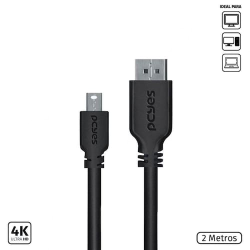 Cabo Mini Displayport Macho Para Displayport Macho V.1.2 28awg Puro Cobre 2 Metros - Pmddpm-2