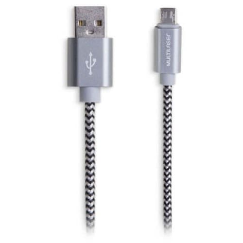 Cor: Preto e cinza Material da parte externa: Nylon e aço Material da parte interna: Cobre e aço Cabo: 1,5 m Conectores: Metal Saída: 1a Marca: Multilaser Conteúdo da embalagem: 1 Cabo Micro Usb Dimensões aproximadas do produto: 0,4 x 0,4 x 15 cm (A x L x P) Dimensões aproximadas da embalagem: 7 x 5 x 18 cm (A x L x P) Peso aproximado do produto: 0,038 Kg Peso aproximado da embalagem: 0,1 Kg Informações Adicionais: Carrega dispositivos Android.