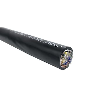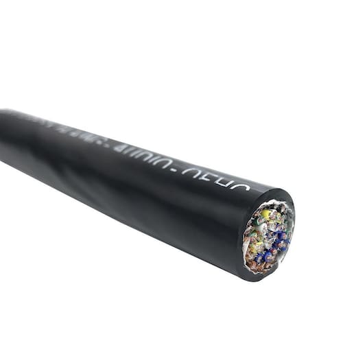 Cabo multisom, com condutores em cobre ofhc estanhado na seção de 24 awg pareado, blindado em fita de alumínio 100%, espaguetado e numerado par a par e reunidos com passo adequado, separados em fita tnt e coberto com termoplastico pvc.