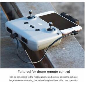 O cabo é utilizado para conectar seu controle remoto ao seu celular ou teclado. Com esta linha, você não precisa ligar o wifi, seu telefone pode se conectar ao controle remoto com facilidade, praticidade e praticidade. A foto tirada será exibida no seu telefone. Compatível com DJI Mavic Air 2 e Mini 2.