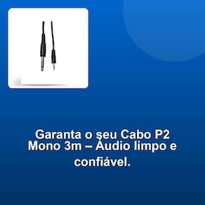 Com 3 metros de comprimento, ele oferece a flexibilidade necessária para conectar dispositivos em diferentes configurações, garantindo maior liberdade de movimento e organização no espaço. A cor preta discreta combina perfeitamente com qualquer setup, seja em estúdios, palcos ou ambientes domésticos. Equipado com um plug P2 mono em uma extremidade e um plug P10 mono na outra, este cabo é altamente versátil, adaptando-se a uma ampla gama de equipamentos de áudio, como mixers, amplificadores, instrumentos musicais e sistemas de som.