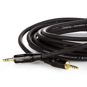 Composto por dois conectores machos P2 Estéreo 3,5mm da Linha Gold, com pintura especial banhado a ouro e um Cabo de Áudio Estéreo 2 x 0.30 mm que tem malha com dupla blindagem trançada em cobre e fita de alumínio, proteção contra interferências eletromagnéticas e ruídos. E, barbante alvejado para dar resistência a mecânica do cabo.