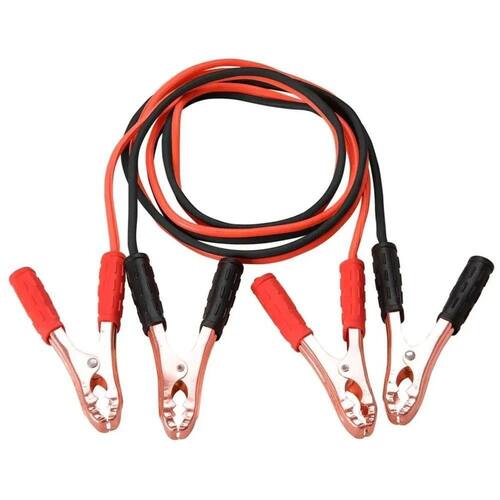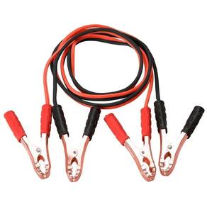 Cabos de cobre de 8 mm de diâmetro revestidos com PVCGarras tipo jacaré em cobre com empunhaduras revestidas em PVC ;