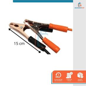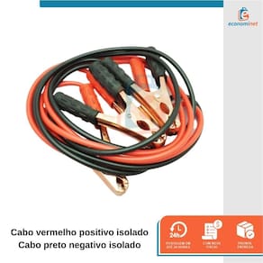 CARACTERÍSTICAS TÉCNICAS: Material: Cobre, pvc, garra de ferro Medidas: 2,5 metros Capacidade: 100A Voltagem: 12V Material isolado 4 garras modelo jacaré Cabo vermelho positivo isolado Cabo preto negativo isolado Marca: Starfer Ref.: 6092152