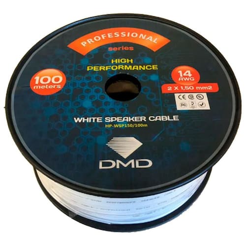 O cabo é composto por dois condutores de 2,50mm de espessura (14 AWG), que fornecem uma excelente condução de sinal e garantem uma transmissão de áudio nítida e precisa. Sua cor branca discreta permite que o cabo se misture facilmente ao ambiente, proporcionando uma instalação limpa e organizada.