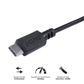 Cabo Para Celular Smartphone Usb Tipo C 2.0 Para Usb Tipo C / Type C 2.0 1 Metro Preto - Pucp-01 Dados Técnicos 1 metro Bi-Direcional Taxa Máx. de Transferência: 480 Mpbs Material do Cabo: Cobre Puro 22 AWG Corrente Máxima: 20V 5A (65W)