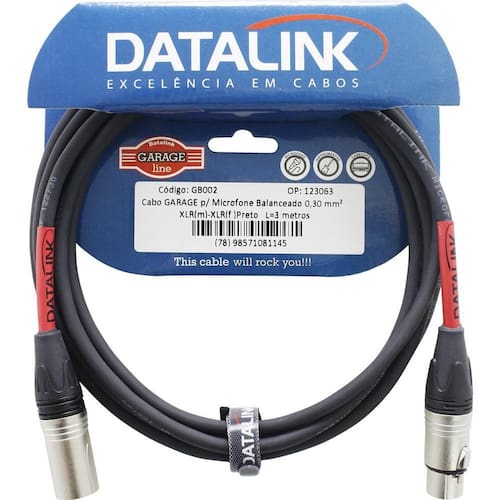 Tamanho: 3 metros Código Datalink: GB002 Cabo GARAGE para Microfone Balanceado 0,30 mm2 XLR m -XLR f Preto L=3 metros