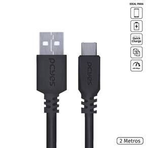 Cabo USB-A para USB-C, 2 metros de comprimento, Bi-Direcional, Taxa de Transferência de 480 Mbps, Cobre Puro 28 AWG, Suporta corrente máxima de 5V 3A (15W).Tipo