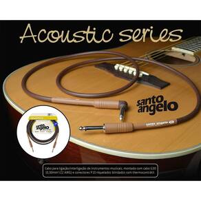 Cabo Para Violão Santo Angelo Acoustic 4,57 Metros Plug Em L O cabo para instrumentos musicais e interligação de outros equipamentos Santo Angelo Acoustic é fabricado com liga de cobre OFHC Isenta de Oxigênio e bitola de 0,30mm²/22AWG G30 . Montado com conectores P10 x P10 em L usinados em latão CLA niquelados e blindados com thermocontrátil. Características: Uso: Instrumento Uso 2: Mesa de Som Uso 3: Áudio Blindagem: Cobre trançado Material: PVC Bitola mm²: 0,30mm² Bitola AWG: 22AWG Linha: STANDARD Tipo de plug L : P10 Mono Material do plug L : Latão Tipo de plug R : P10 Mono Material do plug R : Latão Thermocontrátil: Sim Garantia: 1 ano Ângulo: 180º Função: Interligação Especificações: Modelo: acoustic Cor: Series Marrom Comprimento-ft: 15 Comprimento-m: 4,57 Ean: 7899028827095