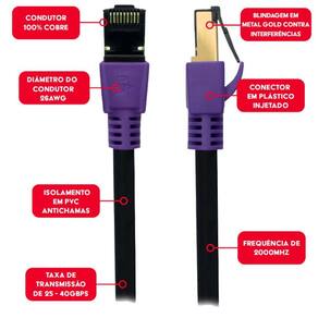 A velocidade na transmissão de dados é o que identifica os cabos patch cord cat 8 da 5+. Disponível em diversas metragens, com conector 100% cobre e blindagem interna, garante Uma taxa de transmissão de dados de 25-40gbps com estabilidade e livre de interferências. 5+ muito + tecnologia. - condutor 100% cobre - conector em plástico injetado - frequência de 2000mhz - diâmetro do condutor 26awg - taxa de transmissão de 25-40gbps Marca: Não Informado Ean: 7899744074018