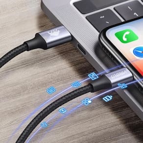 Com este cabo, você pode carregar e sincronizar dispositivos com conector Lightning de forma rápida e segura, usando apenas um cabo. Possui 1,5 metro de comprimento, ideal para uso diário, e é compatível com transferência de dados para computadores e portas USB-C.