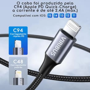 Detalhes do produto: Cabo PD Tipo C para Lightning 5V 2.4A 1.5M