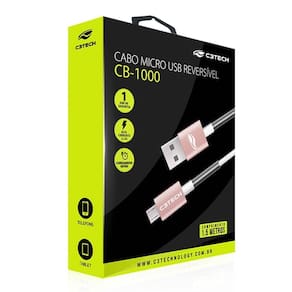 Descricao Informacoes do ProdutoCaracteristicas Com o cabo reversivel Micro USB CB-1000 conectar seus dispositivos a porta USB do computador para recarga e sincronizacao ficou mais facil, gracas a sua entrada reversivel voce nao perde mais tempo tentando achar o lado correto do cabo.ESPECIFICACOES TECNICAS | DIMENSOES Cor: cinza; Cabo micro USB reforcado; Conexao microusb reversivel; Conectores em aluminio; Comprimento do cabo: 1.5M; Permite ser conectado; Fita organizadora de cabo; Cabo reforcado;Conectores muito mais resistentes e duraveis.Saida:Alta corrente (2.4).Certificado: RoHS; CE.Outros Descricao: Cabo USB-Micro USB 1,5M CB-1000PK C3Tech Altura: 1,00 cm Largura: 0,50 cm Comprimento: 150,00 cm Peso: 35,00 g Especificacao Tecnica Informacoes do ProdutoCaracteristicas Com o cabo reversivel Micro USB CB-1000 conectar seus dispositivos a porta USB do computador para recarga e sincronizacao ficou mais facil, gracas a sua entrada reversivel voce nao perde mais tempo tentando achar o lado correto do cabo.ESPECIFICACOES TECNICAS | DIMENSOES Cor: cinza; Cabo micro USB reforcado; Conexao microusb reversivel; Conectores em aluminio; Comprimento do cabo: 1.5M; Permite ser conectado; Fita organizadora de cabo; Cabo reforcado;Conectores muito mais resistentes e duraveis.Saida:Alta corrente (2.4).Certificado: RoHS; CE.Outros Descricao: Cabo USB-Micro USB 1,5M CB-1000PK C3Tech Altura: 1,00 cm Largura: 0,50 cm Comprimento: 150,00 cm Peso: 35,00 g