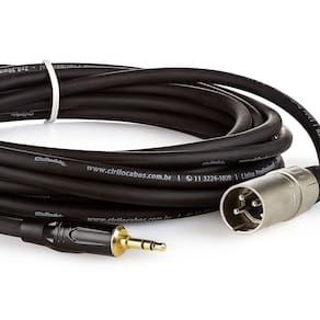 Composto por um conector XLR Macho e uma ponta P2 Estéreo Macho, ambos conectores da marca Cirilo Cabos, acoplados em um Cabo de Áudio Estéreo 2 x 0.30 mm que tem malha com dupla blindagem trançada em cobre e fita de alumínio, proteção contra interferências eletromagnéticas e ruídos. E, barbante alvejado para dar resistência a mecânica do cabo.