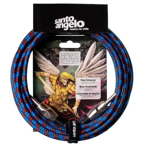 Cabo Santo Angelo 0,20mm textil p10xp10 angel tx 10ft/3.05m Descrição do Produto: Cabo para instrumentos musicais e interligação de outros equipamentos. Fabricado com liga de cobre OFHC e bitola de 0,30mm / 22AWG G30T . Montado com conectores P10 x P10 usinados em latão CLA e Cor: Colorido Comprimento: 3.05M Revestimento: Textil Bitola em mm: 0,30mm Bitola em awg: 22 AWG