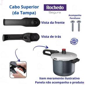 Nosso empenho é procurar o que há de mais atual e funcional no mundo culinário e para organização da sua casa, priorizando sempre a qualidade e a versatilidade dos produtos. Cabo superior para panela rochedo segura 4,5l e 7,6l Cabo superior da panela rochedo segura 4,5 / 7,6 litros. O cabo é antitérmico que garante ainda mais segurança durante o uso, pois reduzem a propagação do calor. Acompanham os dois parafusos para fixar na panela. Atenção: não acompanha cabo inferior, alças, válvula de segurança e pino. Somente o cabo superior. Serve nos modelos: Rochedo segura 4,5l Polida Vermelha Grafite Stone pro Rochedo segura 7,6l Vermelha Não serve nos demais modelos. Conteúdo da embalagem: 1 cabo superior panela rochedo segura Gostou Esse produto pode ser seu aguardamos sua compra Marca: Não Informado Ean: 7898749650937
