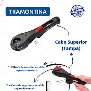 Nosso empenho é procurar o que há de mais atual e funcional no mundo culinário e para organização da sua casa, priorizando sempre a qualidade e a versatilidade dos produtos. Cabo superior para panela tramontina solar nova 3l / 4,5l / 6l Cabo superior da panela tramontina solar nova 3 /4,5/ 6 litros. O cabo é antitérmico que garante ainda mais segurança durante o uso, pois reduzem a propagação do calor. Acompanham os dois parafusos para fixar na panela. Atenção: não acompanha cabo inferior, alças, válvula de segurança e pino. Somente o cabo superior. Serve nos modelos: 3 litros: 62511/223 62511/226 4,5 litros 62513/223 62513/226 62511/222 vapor 6 litros 62516/223 62516/226 62516/222 vapor Referencia: 62516/930 Serve somente no modelo novo - detalhe vermelho Conteúdo da embalagem: 1 cabo superior panela tramontina solar nova 2 parafusos Gostou Esse produto pode ser seu aguardamos sua compra Marca: Não Informado