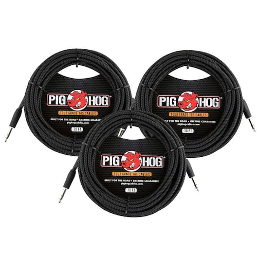IMPORTANTE: Se for um produto elétrico, ele pode ser compatível com uma tomada de 110 volts. Se utilizado fora dos Estados Unidos, pode ser necessário um conversor de voltagem para garantir a operação adequada. Verifique se o produto que você está comprando é elétrico antes de considerar essas informações. Cabo TRS de tecido preto Pig Hog PTRS30BK de 30 pés O cabo balanceado PTRS foi construído