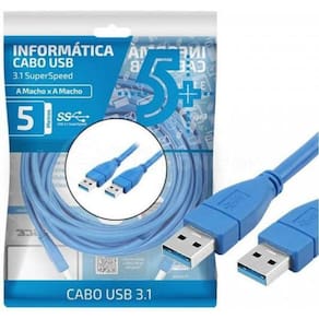Cabo usb 3.1 - usb a macho + usb a macho 3.1 - 5m - azul Descrição do produto Cabo usb 3.1 macho x macho 5m 018-7716 5+ cabo 10x mais rápido que o usb 2.0 e com taxa de transferência de até 5 gbit/s. Mais conectividade, durabilidade, praticidade, mobilidade e qualidade para você. Dados técnicos Outras especificações Cor: azul Comprimento: 5 metros 6 meses Imagens imagens meramente ilustrativas. Código erp 1582800001 Código sku 9004286 Part number 018-7716 Código de barras 7899744005333 Itens inclusos 01- cabo usb 5m Dimensões da embalagens Cabo usb 3.1 macho x macho 5m 018-7716 5+ Altura: 3,00 centímetros Largura: 18,00 centímetros Profundidade: 26,00 centímetros Peso: 200,00 gramas Marca: Não Informado Ean: 7899744005333