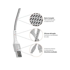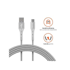 Conteúdo da Embalagem: 1x Cabo USB-A para USB-C Geonav Nylon Trançado Branco 1,20m
