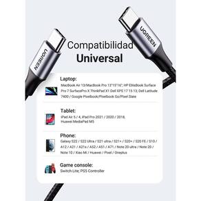 Cabo Usb Tipo C 60W Qc 4.0 Carregamento Rápido 1 MetroCarga rápidaEste cabo usb tipo c suporta power delivery 3.0 e quick charge 4.0/4.0+ oferece carregamento máximo de 60w suporta 20v/3a, 15v/3a, 12v/3a, 9v/3a, 5v/3a.NotasÉ um cabo usb c para usb c, você deve usar com um carregador de porta usb cPara atingir o carregamento de 60w tanto o dispositivo quanto o carregador devem suportar pd 60wTransferência de dados de 480 mbpsEste cabo usb c suporta taxas de transferência de dados de até 480 mbps, permitindo que você transfira um arquivo de 1 gb em questão de 30 segundos. Muito perfeito para transferir arquivos e fotos grandes, aumenta a eficiência do trabalho em casa ou no escritório.Nota este cabo usb c 2.0 suporta apenas carregamento e transmissão de dados, não suporta transmissão de vídeoCarregamento rápido de 60w o cabo usb tipo c suporta a maioria dos protocolos de carregamento rápido, como power delivery, qualcomm qc 4.0+/3.0 e huawei fcp que fornecem corrente 20v/3a máx , 15v/3a, 12v/3a, 9v/ 3a, 5v/3aDurável e robustoEste cabo usb c é feito de um material de nylon trançado de alta qualidade que resiste a mais de 10.000 testes de dobra e tem garantia de resistência ao desgaste diário. Possui vários escudos para reduzir a possível perda de dados.Marca ugreenCor preto trançado de nylonComprimento 1 metro Dispositivos compatíveis notebook, tablet, smartphone