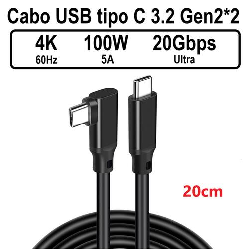 Cabo USB tipo C 3.2 Gen2*2 20Gbps PD 100w 4K 60Hz 20 Metros