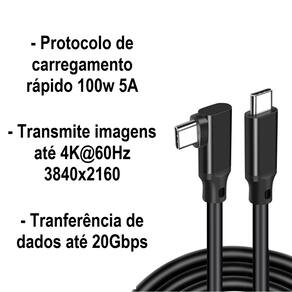 Cabo de dados USB-C/C com as especificações mais avançadas da atualidade, com este cabo é possível transferir dados com a taxa de 20 Gigabits por segundo, ou transmitir imagens em 4K@60Hz e áudio, com ele é possível utilizar o Protocolo de carregamento rápido, pois possui alta corrente 100W (20V 5A).