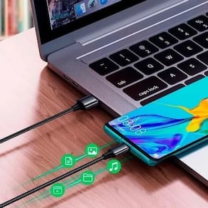 Cabo USB Tipo C com conector de entrada Tipo C e saída USB. Construção reforçada para maior durabilidade. Suporta carga rápida e transferência de dados. Não adequado para transmissão de vídeo.Tipo