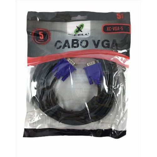 Cabo VGA Macho x VGA Macho, 5 metros, XC-VGA5, Preto, X-CELL Possui filtro contra interferência Utilizado para conectar PC, Notebook, monitor, TV LCD, Plasma, Projetor e outros equipamentos com conexão VGA. Revestimento emborrachado. Marca: X-Cell. Cor: Preto. Tamanho: 5 metros. Homologação Anatel: 020651005882 Ean: 7898615159427