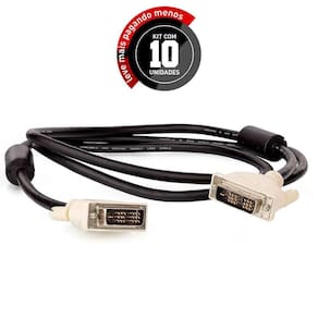 Cabos Dvi - Modelo Dvi-d Single Link 1,5 Mt - Kit 10 Se você quer imagens com qualidade 100% digital em DVI, esse cabo DVI-D Single Link é ideal para ligar computadores em monitores e televisores LCD. Ele conta com 18 pinos + 1 e suporta somente sinal digital. Dá pra identificar facilmente também porque parece banguela, faltando 6 pinos bem no centro; Para assegurar qualquer tipo de interferência, o Cabo DVI - Modelo DVI-D Single Link conta com filtros em suas extremidades, oferecendo mais qualidade no momento da transmissão. Especificações: Conexão: DVI-D Macho / Macho Tamanho: 1,5 metro -E101344 - 80ºC Garantia: 3 meses