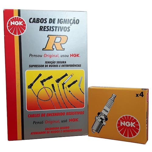 Produto: Kit Cabos de Vela NGK + Jogo de Velas NGK Fiat Palio Weekend 1.4 8v Flex 05 em diante