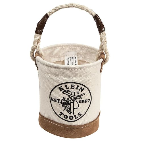 Klein Tools Mini balde de ferramentas 5104MINI, balde de ferramentas multiuso com fundo de couro, porcas e saco de parafuso com alça de corda reforçada, bolsa pequena para utilidades - A mini bolsa de ferramentas é feita com lona natural resistente e possui um fundo reforçado com couro para maior resistência - O tamanho compacto garante o transporte conveniente de pequenos suprimentos no local de trabalho, no escritório ou no seu carro - A parte inferior robusta garante estabilidade, tornando-a ideal para pequenas ferramentas e armazenamento de suprimentos em um balcão ou mesa - Bolsa utilitária leve para fixadores, ferramentas e outros pequenos suprimentos - Alça durável feita de corda reforçada para uma aderência resistente e transporte confortável - Tamanho ideal para pequenas ferramentas e peças com 15 cm de altura e 10 cm de diâmetro - O fundo estável o torna perfeito para usar em um balcão ou mesa para organizar pequenas ferramentas e outros suprimentos