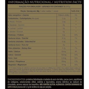 Cacao Whey é a combinação de whey protein hidrolisado e isolado obtido através do processo Cross flow Microfiltration, que purifica e preserva as propriedades das proteínas, proporcionando uma melhor absorção peptídeos de colágeno, adoçantes naturais e puro cacau. Fonte natural de BCAA (aminoácidos essenciais de cadeia ramificada), e outros aminoácidos essenciais ao funcionamento do organismo.Contém: Whey Protein Hidrolisado e Isolado (Thermax 690 e Provon 292)22g de proteína por porçãoPeptídeos de colágenoContém naturalmente bcaa em sua composiçãoCacau puroAdoçado com edulcorantes de fontes naturaisAromas naturaisNão contém: Adoçantes artificiaisAçúcarGlútenLactoseCorante artificialCaseínaConservantesSugestão de uso:Recomendase misturar uma (1) colher medida ou um sachê de 30 gramas (que fornece 22 gramas de proteína) em aproximadamente 300ml de água gelada e misture até total homogeneização, antes ou após atividade física, conforme orientação do médico ou nutricionista.Ingredientes:Proteína hidrolisada e isolada do soro do leite, cacau puro, peptídeos de colágeno, edulcorantes xilitol, estévia e taumatina, aroma idêntico ao natural de chocolate, aroma natural de baunilha. Não contém glúten. ANVISA: Registro ISENTO conforme resolução RDC 27 de 06 de agosto de 2010 anexo I.