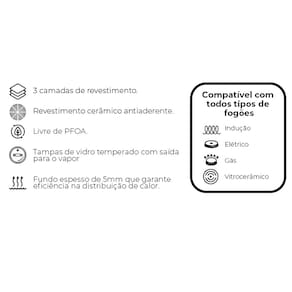 A panela antiaderente, também conhecida como teflon, é revestida com uma substância capaz de repelir certas substâncias. Por isso, a comida não gruda nela. É resistente a altas temperaturas e a arranhões. As caçarolas em alumínio antiaderente contam com uma camada que cobre o seu material e evita que o alimento grude em seu interior. Dessa forma, contribuem para uma culinária saudável, dispensando o uso excessivo de gordura ou óleos vegetais. Para quem gosta de um peixe ou filé de frango grelhado, ou não dispensa uma omelete delicioso, não pode deixar de ter uma em sua cozinha. Compatível com os demais fogões: Indução, Elétrico, Gás e Vitrocerâmico. Livre de PFOA.