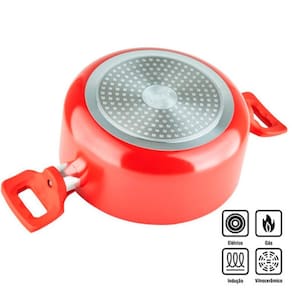 Caçarola Cerâmica Red 20cm Fundo de Indução Tampa de Vidro As caçarolas possuem boa profundidade com paredes laterais altas, tampa e 2 alças para manuseio, por esses motivos são ideais para o preparo de cozidos e ensopados, mas podem ser utilizadas de diversas formas nas suas receitas do dia a dia ou em preparações especiais. Pode usar em fogões elétrico , a Gás, vitrocerâmico , halogêneo e indução. Pode ir na maquina lava- louca. Pratica, funcional e mais saudável não macha e não risca com facilidade, dissipa o calor para o cozimento uniforme, reduz a qualidade de óleos e gordura, prepara mais rápido e consume menos energia e, fácil de limpar, não gruda e não queima os alimentos.
