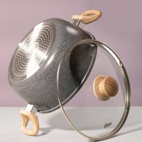 A caçarola com tampa 4,5L Cerâmica Marble Dark Grey Oster é perfeita para completar sua cozinha. Ela faz parte da linha avulsa Marble Edition, que possui um revestimento biocerâmico que auxilia no preparo de refeições saudáveis. Além disso, é fácil de limpar e possui pegadores revestidos em silicone, proporcionando mais firmeza ao segurar.