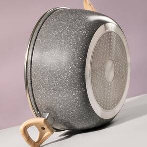 A tampa de vidro temperado permite visualizar o alimento preparado sem dificuldades. Com capacidade para 4,5L, essa caçarola possui um acabamento marmorizado e pegadores em silicone, garantindo um design moderno e seguro. Sua espessura é de 5mm, proporcionando maior durabilidade e distribuição uniforme do calor.