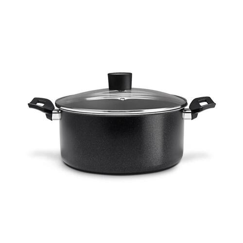 Prática e segura, a caçarola com tampa da linha Ebony, de 22x10cm com capacidade de 3,4 litros, tem estrutura de alumínio que dissipa melhor o calor cozinhando o alimento por igual e mais rapidamente. Já o revestimento interno antiaderente não deixa o alimento grudar mesmo com uso reduzido de óleo. O material também facilita a limpeza. A tampa é de vidro temperado e possui saída para o vapor. Com alças de baquelite, material que não aquece, o manuseio do utensílio fica mais fácil e seguro. A pintura externa preta, trazendo maior versatilidade e sobriedade para a sua cozinha.