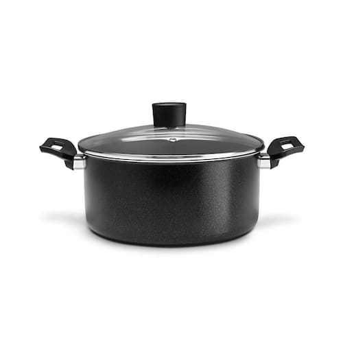 Prática e segura, a caçarola com tampa da linha Ebony, de 22x10cm com capacidade de 3,4 litros, tem estrutura de alumínio que dissipa melhor o calor cozinhando o alimento por igual e mais rapidamente. Já o revestimento interno antiaderente não deixa o alimento grudar mesmo com uso reduzido de óleo. O material também facilita a limpeza. A tampa é de vidro temperado e possui saída para o vapor. Com alças de baquelite, material que não aquece, o manuseio do utensílio fica mais fácil e seguro. A pintura externa preta, trazendo maior versatilidade e sobriedade para a sua cozinha. Marca: Não Informado