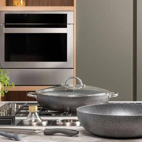 A Caçarola com Tampa Big Family é um modelo de versatilidade e estilo na cozinha! Útil para cozimentos lentos, como ensopados e guisados, prepara com maestria carnes, legumes, massas e muito mais. Sua estrutura em alumínio cozinha por igual, de forma rápida e eficiente. A comida não gruda e a limpeza é facilitada pelo revestimento antiaderente e multicamadas, livre de PFOA. A caçarola conta ainda com alça e pomel em aço inox rebitado e tampa de vidro temperado com saída para vapor.