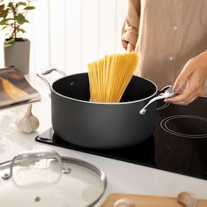 Cozinhe seus alimentos em menos tempo e prepare suas receitas em qualquer tipo de fogão, com o exclusivo fundo de indução da caçarola com tampa de 22cm da linha Diamond da Brinox. Com estrutura em alumínio que cozinha por igual e mais rápido, tampa de vidro temperado, com saída para vapor, cabo em aço inox rebitado, a caçarola conta ainda com antiaderente pro-flon premium, que, além de ser mais resistente, não gruda, é fácil de limpar e livre de PFOA. Como todas as panelas da Brinox, a linha Diamond possui Classificação A no Inmetro. Seu acabamento fosco, unido a cor preta, transforma sua cozinha em um ambiente moderno e sofisticado._x000D_